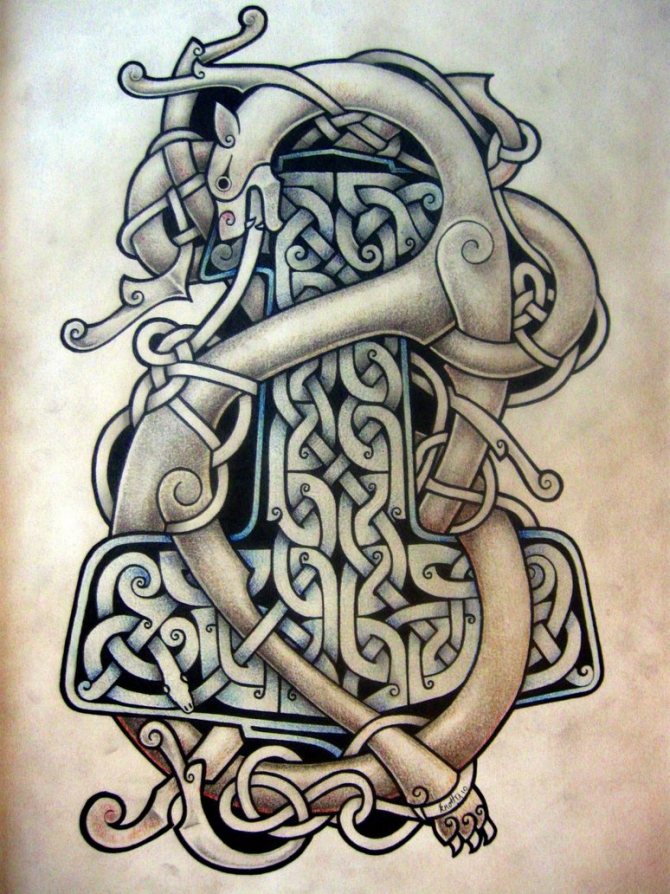 2Змии - Най-интересните варианти, използвани за татуировки, са водещи. Символиката на змиите е да помагат на хората в осигуряването на духовна прехрана - човек, живеещ на Земята, подобно на представеното влечуго, получава жизнена енергия, за да живее на планетата. Келтите вярвали в магическата сила на змията - в присъствието на змия човек можел да разчита на нейната защита от врагове.