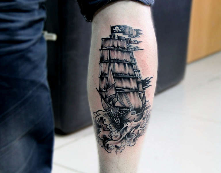 Най-удобното място за майстора за нанасяне на татуировката - прасците на краката. Тук има достатъчно свободно пространство, отлична амортизация на мускулите и гладка повърхност на кожата. От своя страна, татуировката на прасеца за мъже - разнообразие от скици от всякакъв стил и размер. Оригинално изглеждат както монохромните черно-бели, така и цветните творчески идеи.
