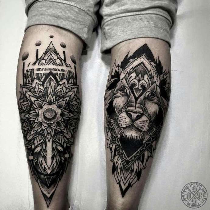 Най-често се използват изображения на хищни животни, воини, герои от скандинавската или гръцката митология. Обърнете се към опитните майстори, които ще направят изображението възможно най-реалистично, ще вземат предвид особеностите на мускулатурата на краката по време на работа.