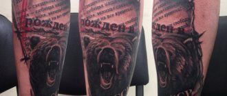 на татуировката с мечка има скандинавски корени. В митологията на викингите мечката е символ на берсеркера. В земите на викингите берсеркерът символизирал мечката - воин, който според легендата можел да се превръща в мечка в разгара на битката. Такава татуировка може да означава