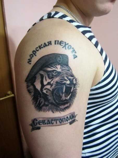 Армейски татуировки. Пехотинците от моторизираните сили имат татуировки под формата на усмихната вълча глава или череп с кръстосани картечници.