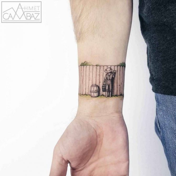 Ескизите на такъв план върху тялото на силния пол са предимно рисунки с малък или среден размер, изобразяващи животни, абстрактни елементи или религиозни компоненти. Често можем да срещнем рисунки на морска тематика като котви или компаси, амулети, различни несложни модели, спретнати надписи и много други изображения. Клиентите мъже избират изображения, които символизират смелост, сила, твърдост и храброст, както и изображения, които вдъхновяват размисъл за живота, любовта и верността.