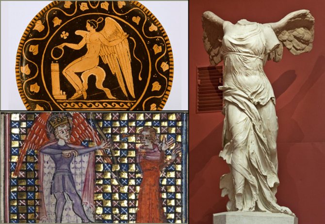Елинистичната култура оказва огромно влияние върху изкуството на средиземноморските страни. Именно в този регион се заражда християнската вяра, така че отзвукът от митовете на древна Гърция прониква във визуалните образи на новата религия. Класическият образ на ангела - крилат млад мъж или момиче - е отражение на образите на древногръцкия бог на любовта Ерос (известен още като Купидон и Амур) и богинята на победата Нике (Виктория при древните римляни).