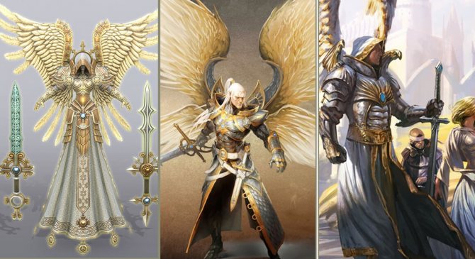 Ангелите и архангелите (първият и третият образ) са базирани на класическия образ.