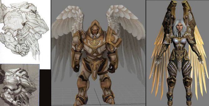 Играта е проектирана от Джо Мадурейра, известен художник на комикси от вселената на Marvel. Ангелите в неговите концепции са с няколко глави по-високи от хората и приличат на киборги с пернати крила. Дебелината на бронята им и нарязаните извивки на бронираните плочи изглеждат като изработени в индустриална фабрика. Това придава на образа им футуристичен привкус.