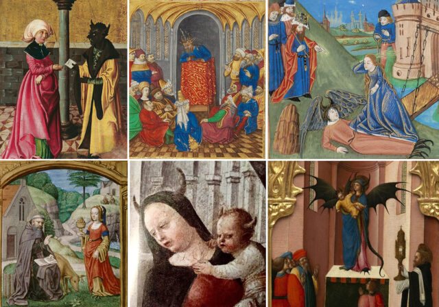 Дяволът с форма на паница в миниатюра от известния Псалтир на кралица Ингеборга приканва светеца Теофил Киликийски от VI в. да сключи сделка с него. Той се съгласява и те сключват специален договор (днес историците действително намират в архивите договори със Сатаната, написани с кръв). По-късно, след като се разкайва, Теофил моли за прошка Дева Мария, която нарушава споразумението.