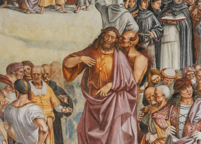Фреска от началото на XVI в. на Лука Синьорели в църква в Орвието показва дявола, който шепне проповед на Антихриста.
