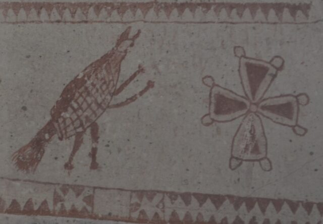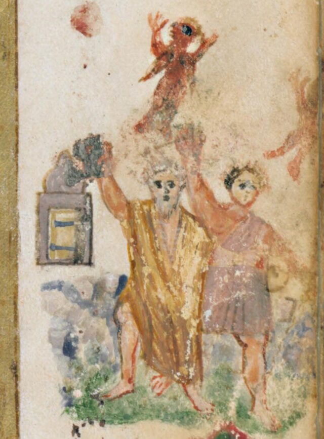 Тъй като в късната Античност все още не са съществували канони за иконографията на дявола, авторът на рисунката до голяма степен импровизира, доверявайки се на собственото си въображение. Присъствието на нимб върху отрицателен персонаж не бива да ни изненадва: по-късно, през Средновековието, демоните, Антихристът и апокалиптичният звяр са изобразявани с ореол около главите си. Този графичен елемент служи не само като знак за святост, но и като свръхестествена сила изобщо, а понякога и като композиционно средство. Освен това авторът е могъл да изобрази Луцифер преди неговото падение - и в този случай доста умело е предал ангелската природа на героя, без по никакъв начин да нарушава истината.