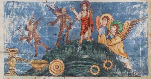 Врагът на човешката раса започва да се рисува масово от девети век нататък. В Щутгартския псалтир, създаден около 820-30 г., откриваме не само многобройни изображения на демони, но и подробно изображение на самия дявол, който изкушава Христос в пустинята. Демоните и Сатаната са почти точни копия един на друг: те са с тъмни тела, разрошени коси и бради, от устата им често изригва адски огън и обикновено са крилати (алюзия за породата на падналите ангели).