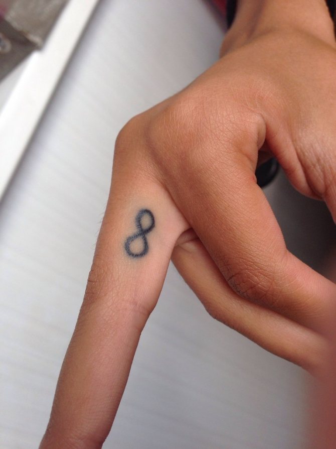 - Татуировката със знака за безкрайност, която се поставя на безименния или средния пръст, е символ на вярност и любов;