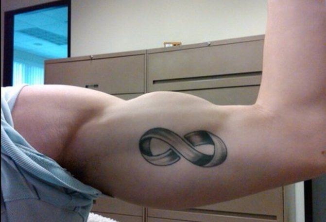 За момчетата символът на безкрайността означава вечен стремеж към кариерно развитие, непрекъснато движение и безкрайна мъжка сила. Мъжете, които правят безкрайна татуировка, се опитват да покажат смелост, стремеж към постижения, непобедимост на духа и готовност за постигане на цели.