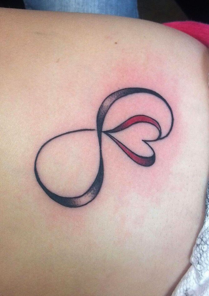 - Често се среща татуировката безкрайност, която прониква в сърцето - изображението изразява пристрастяване към страст, която е завладяла ума;