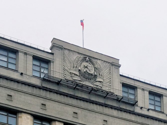 Гербът на Съветския съюз е запазен върху сградата на руската Държавна дума като знак на почит към изкуството. Снимка: ru.wikipedia.org