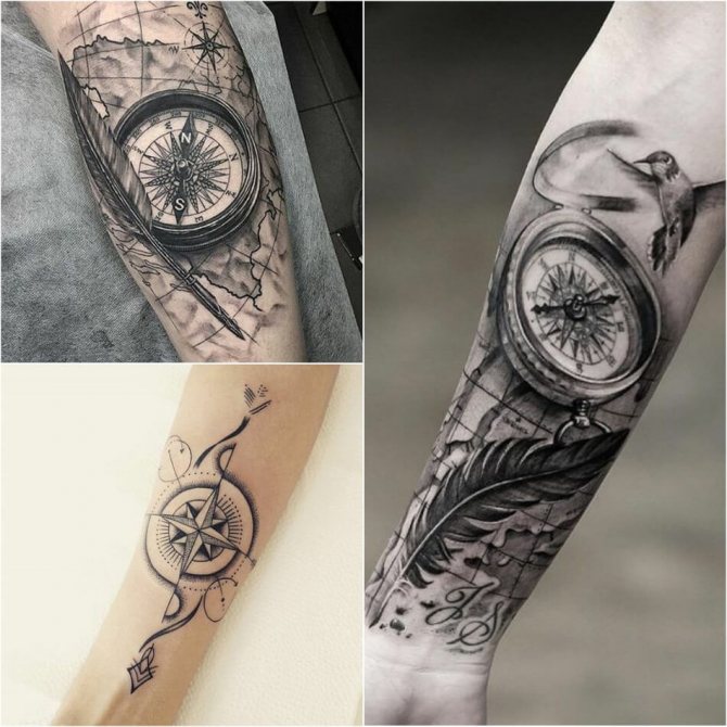 Компас татуировка: значение на ръката, рамото, предмишницата, китката, лакътя, крака