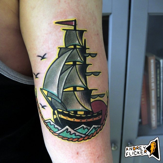 В миналото подобни татуировки обикновено са били запазени за опитни моряци. Ако е изобразена ветроходна лодка с компас, това означава, че морякът е заобиколил нос Хорн, което не всеки е успял да направи. Освен това подобна татуировка може да показва принадлежност към пиратите.