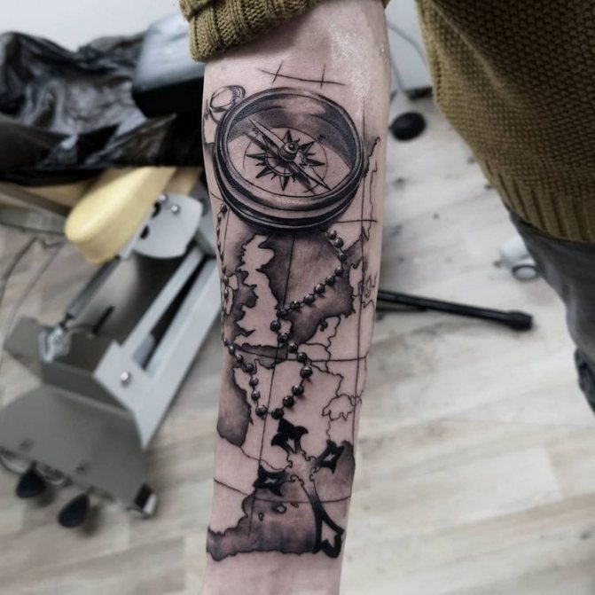 Татуировка компас и карта: значение, мъжки и женски скици