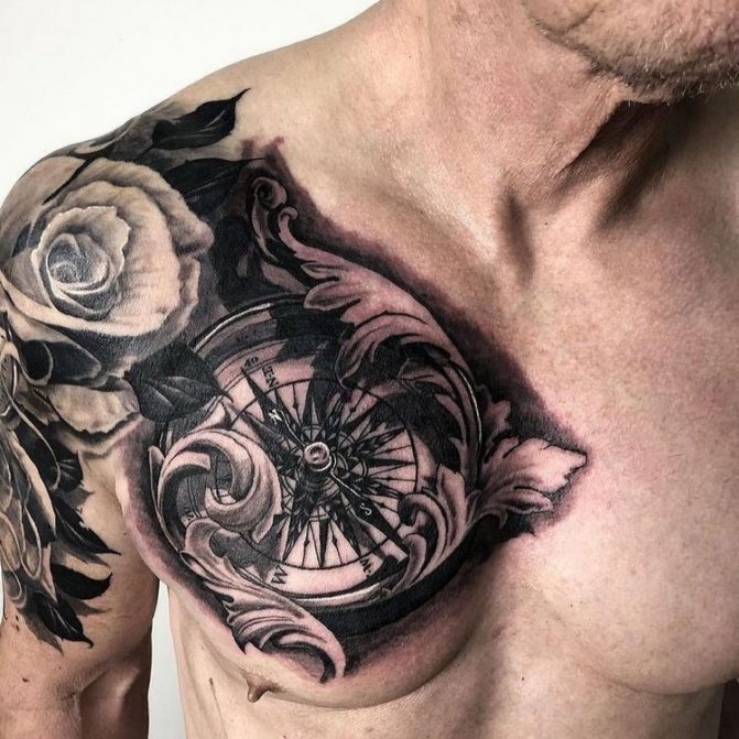 Татуировка на компас и роза: значение, скици мъж и жена