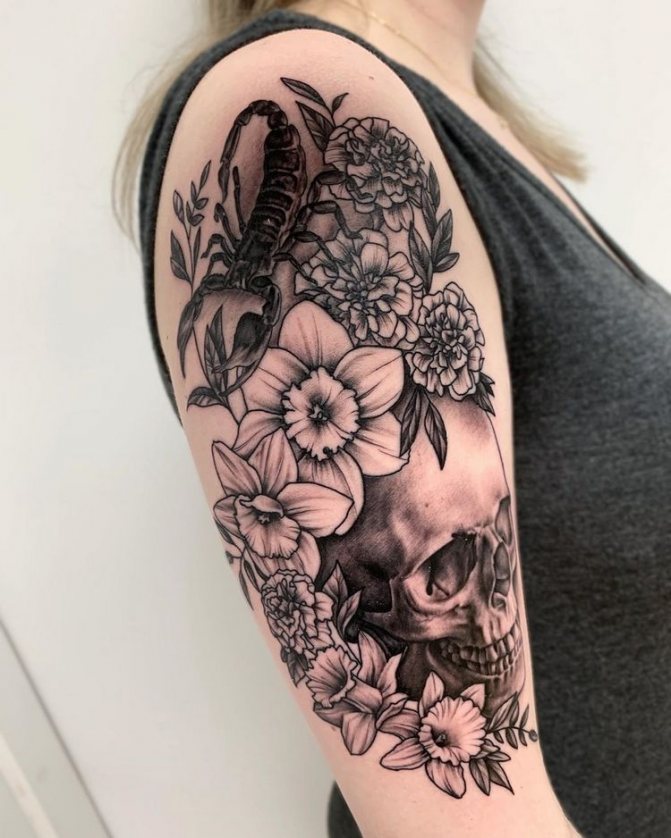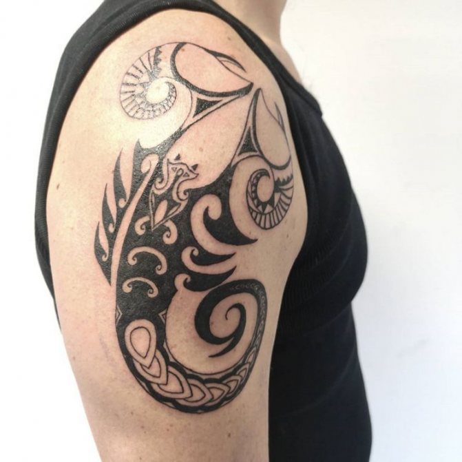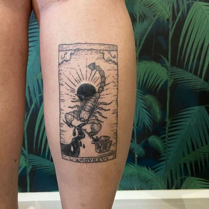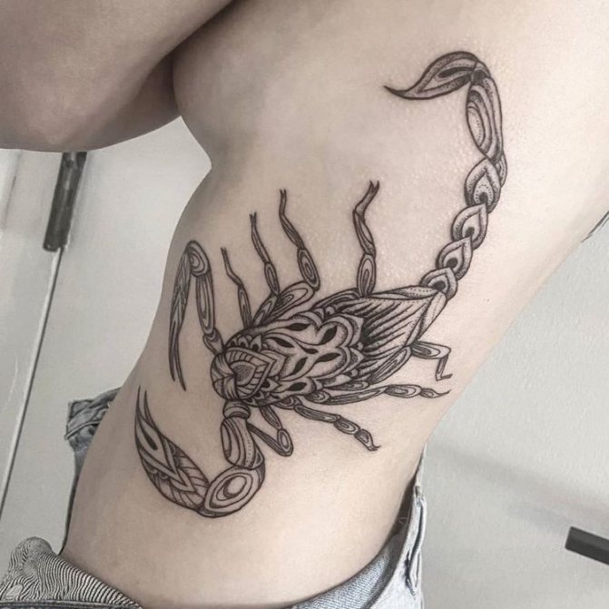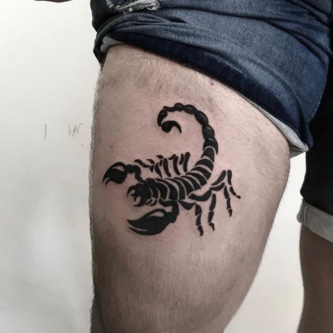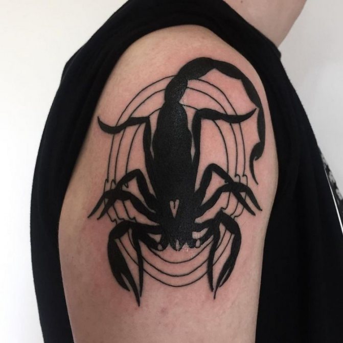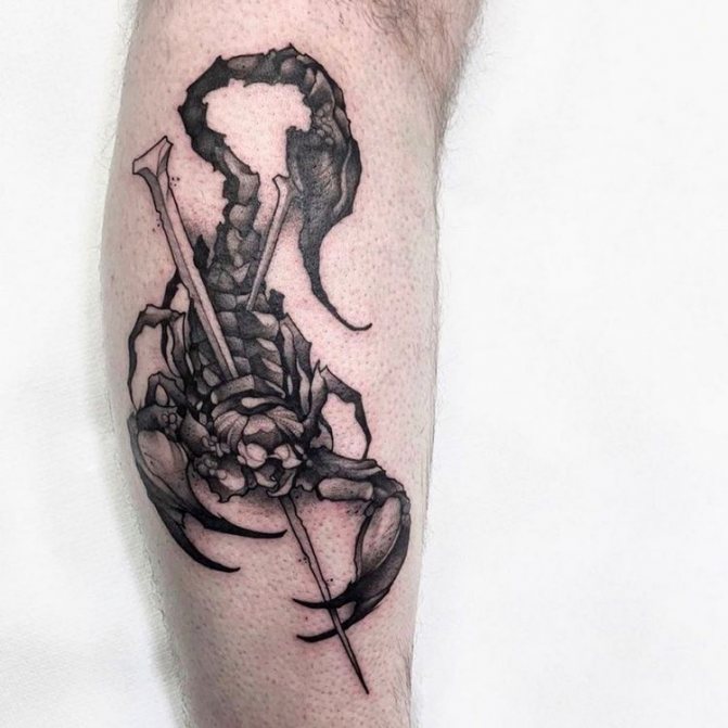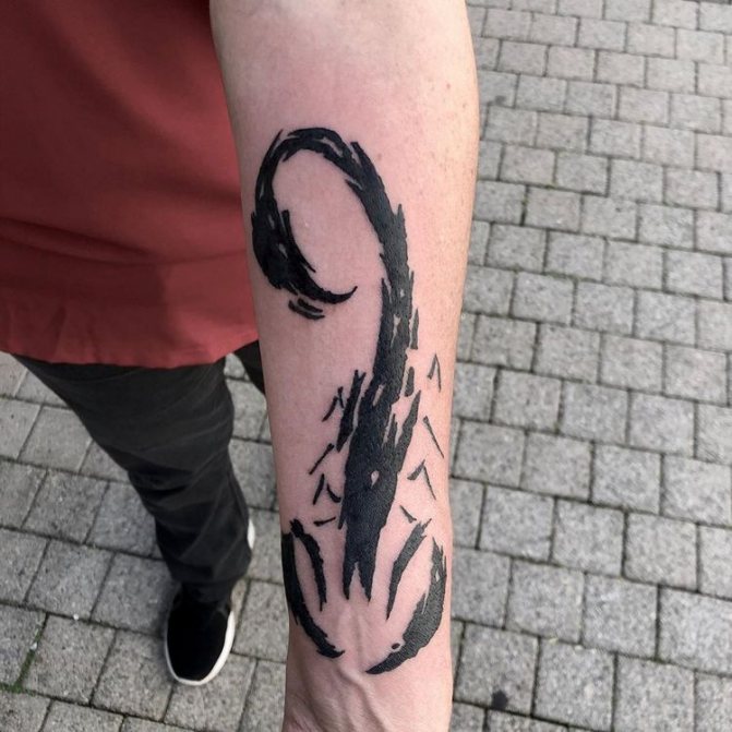 Татуировката Blackwork Scorpion ви дава възможност да избирате между черен силует или черен фон с пролука във формата на обект, или светъл контур в черни очертания. И в двата случая цялата идея на стила се свежда задължително до избора на черен пигмент, който е ключовият елемент на цялата татуировка.
