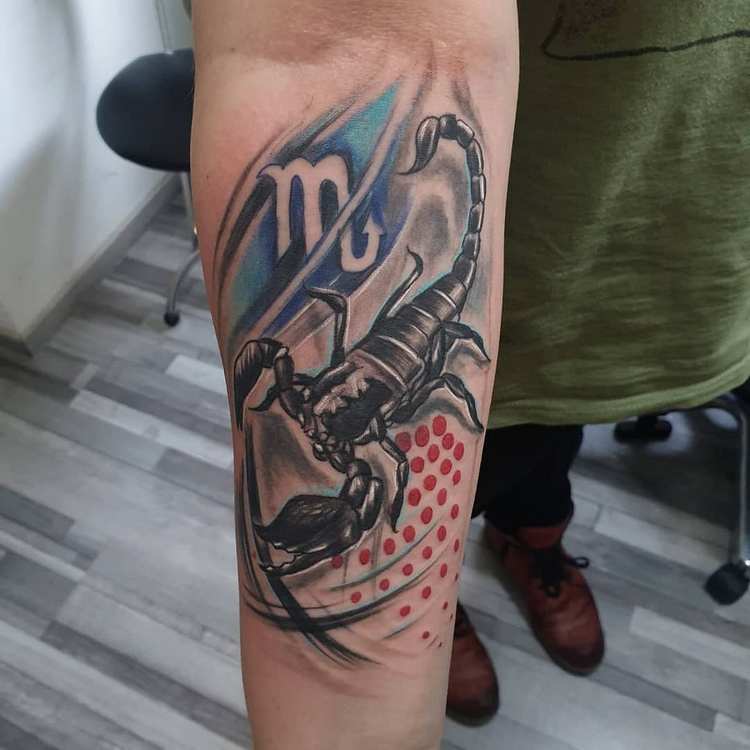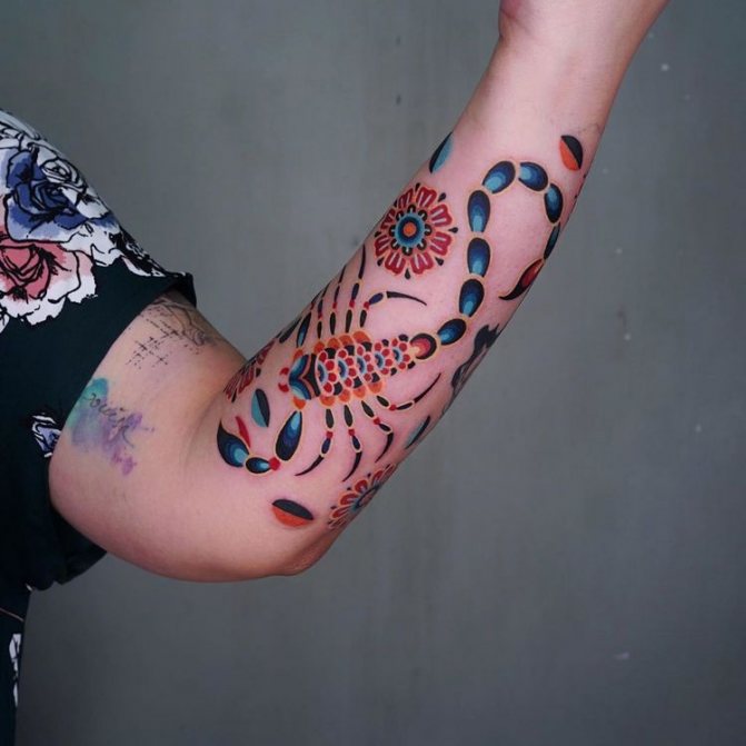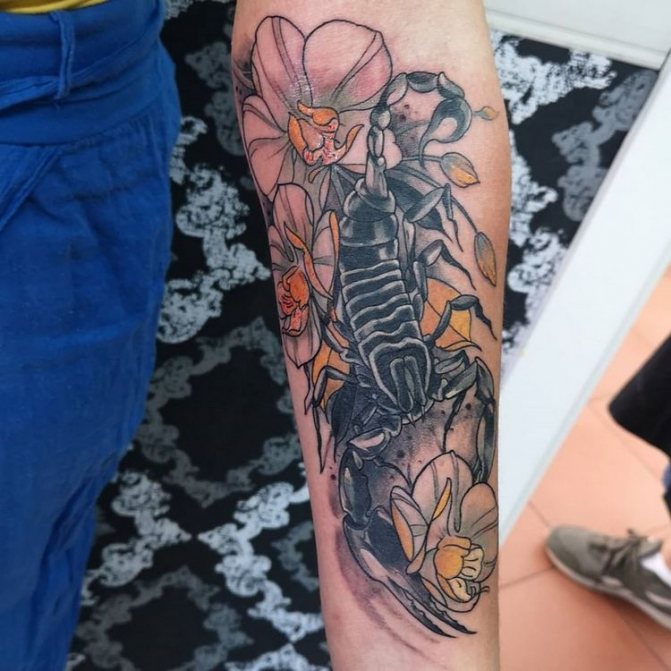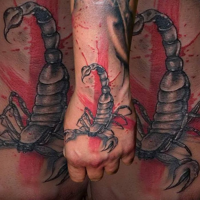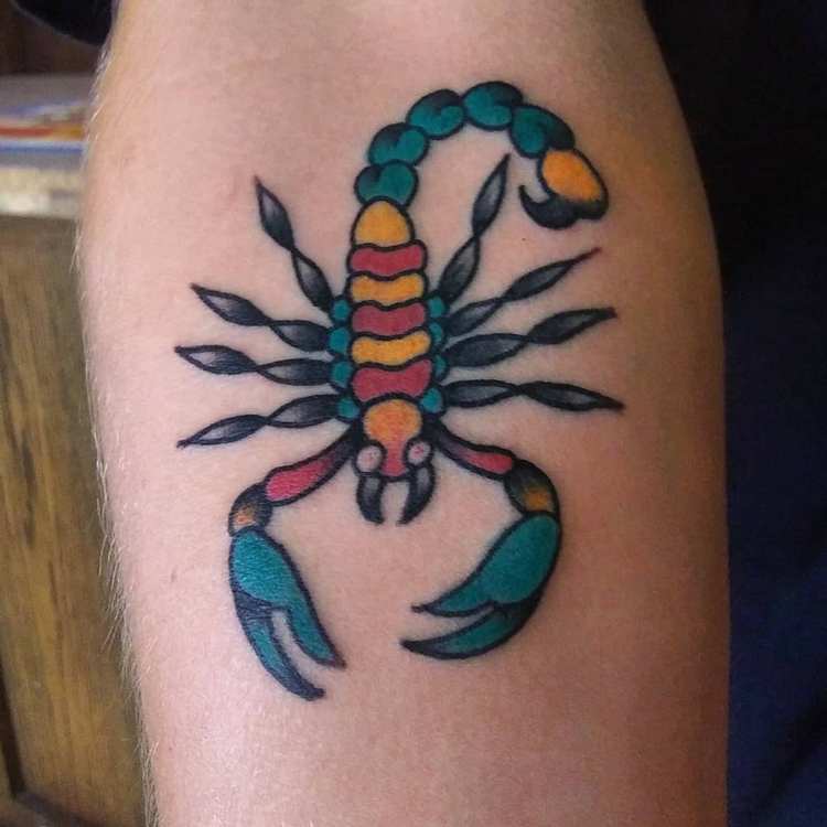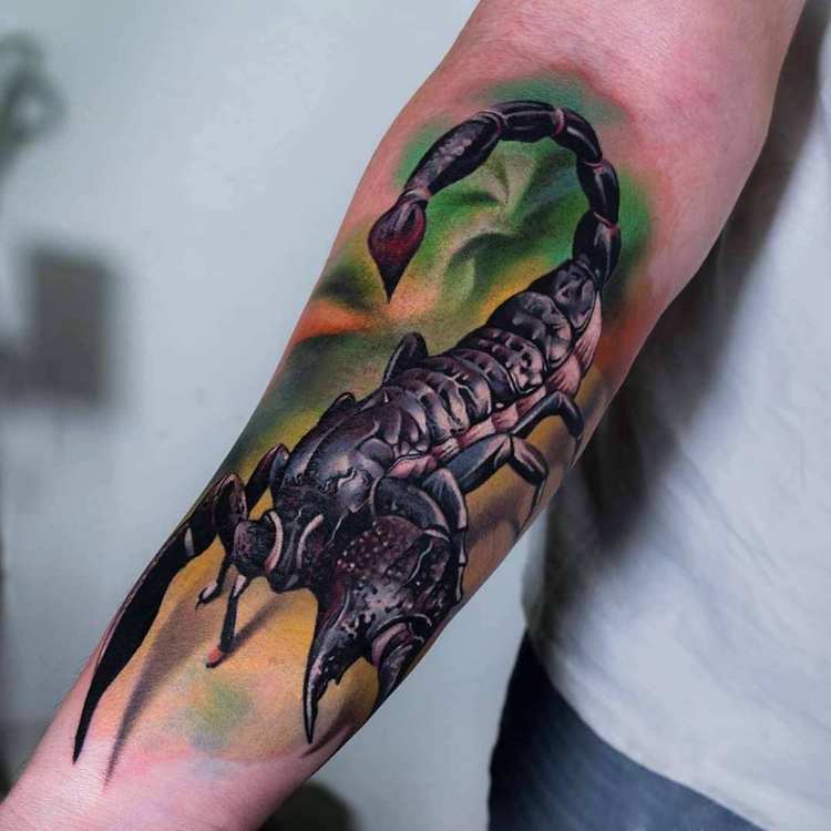 По природа скорпионите са тъмни, почти черни на цвят, но се делят на видове, вариращи от кафяви и сиви до жълти и синьо-черни. Всичко зависи от това колко агресивна е татуировката. Колкото по-светло е то, толкова по-малко плашещо е, а колкото по-тъмно е то, толкова по-тревожно е.