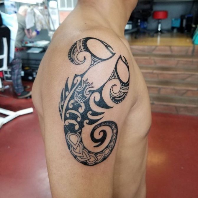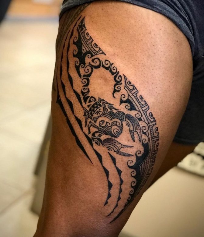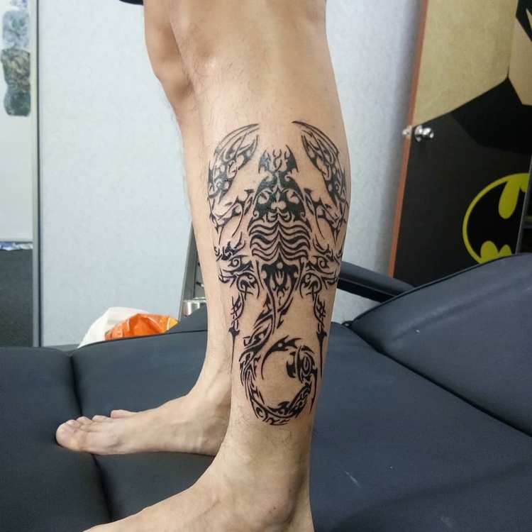 По правило всички татуировки на скорпион в полинезийски стил се правят с черен пигмент или с други думи - с мастило.