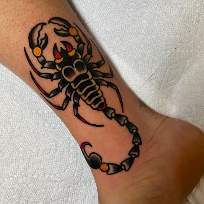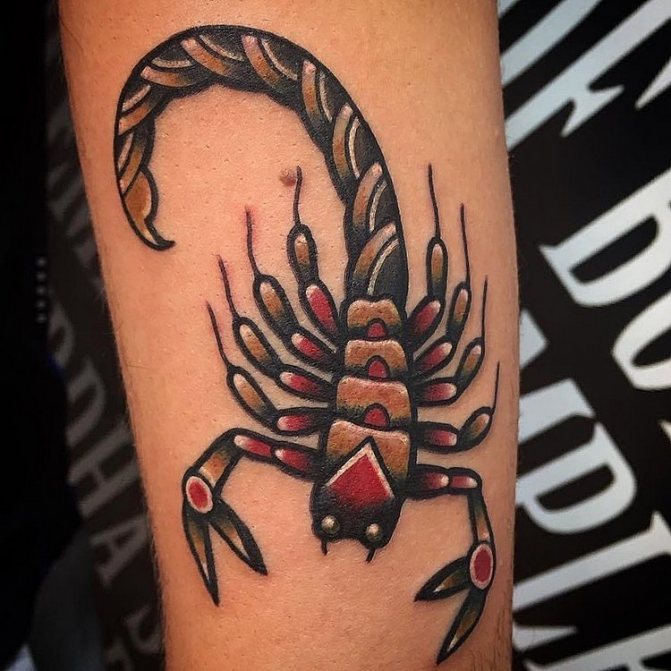 Най-разпространеният стил сред любителите на боди арт. Дори днес тя представлява около 80% от другите стилове, в които се прави татуировката Скорпион. Тя се смята за едно от каноничните изображения, съществували в практиката на старите салони за татуировки, наред с лястовицата с котва, змията и др.