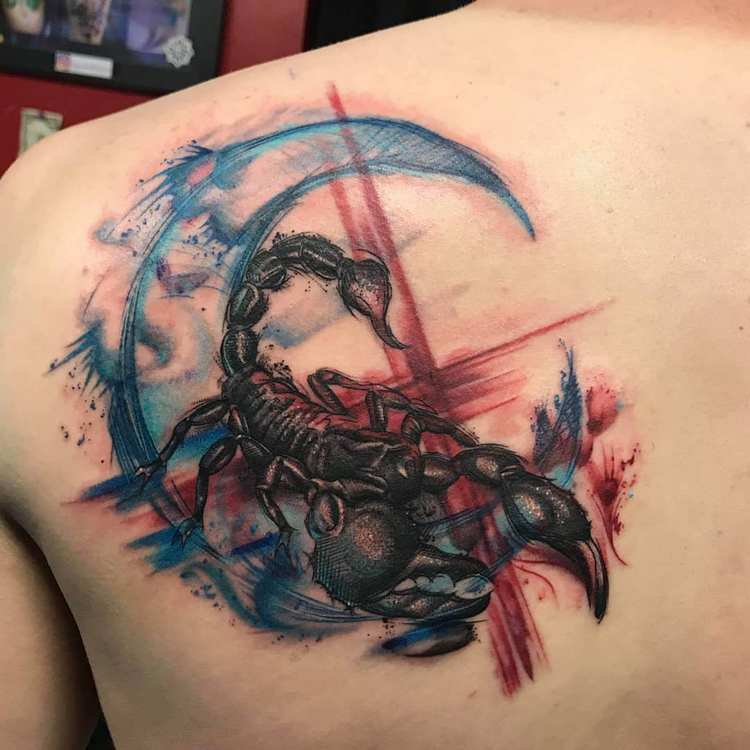 Стилът е ярък, емоционален и модерен, благодарение на устойчивите (а не евтини) багрила. Но разходите се изплащат с оригиналността, свежестта и индивидуалността на изображението на скорпиона в композициите за татуировки. Разнообразната му цветова палитра няма граници и това се вижда от техниките на засенчване, които се правят в различни цветове.