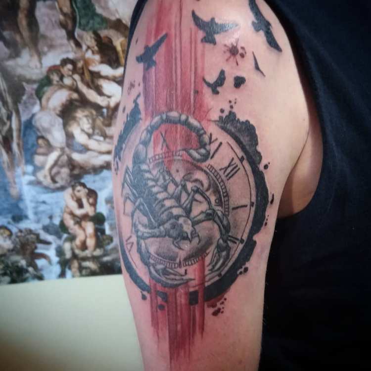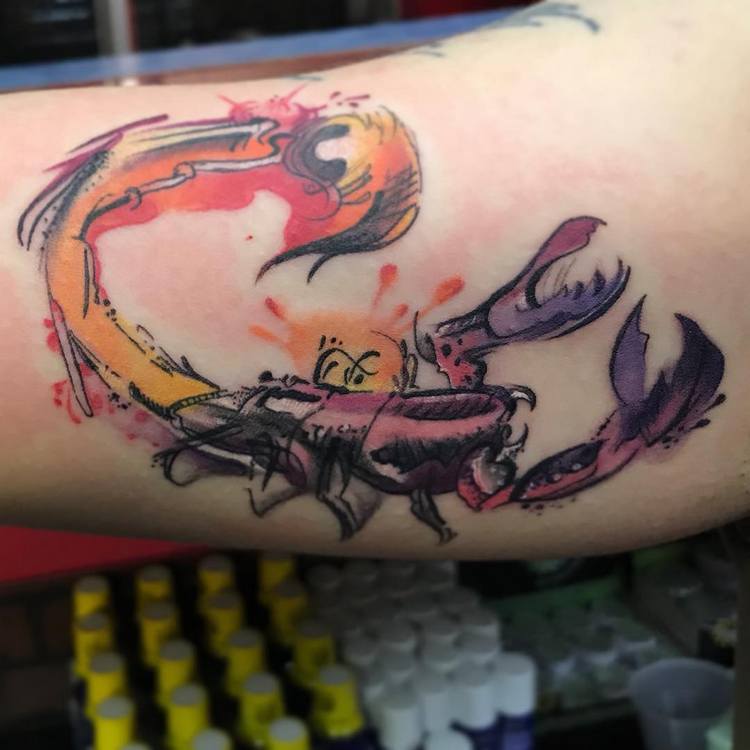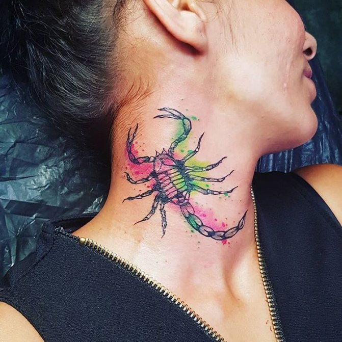 Както момичетата, така и мъжете от планетата се съгласиха с едно общо мнение - татуировката Скорпион в стил Акварел изглежда еднакво впечатляваща за всички. Ярките акварелни петна придават особен чар на изображението и го превръщат в изключително спокоен и позитивен символ за татуировка.