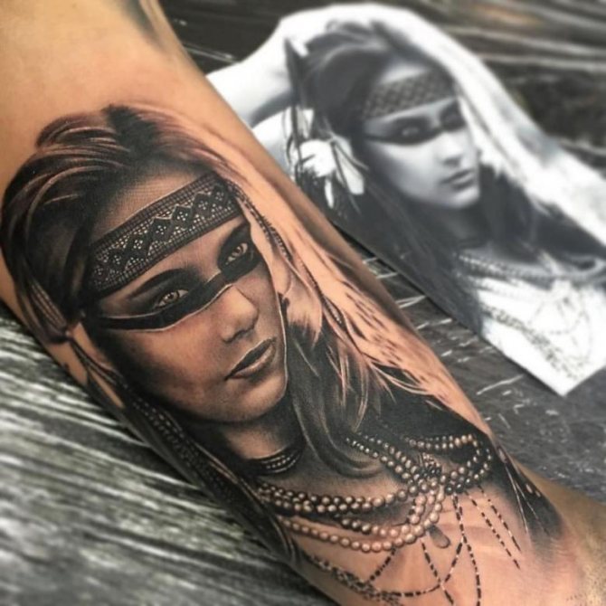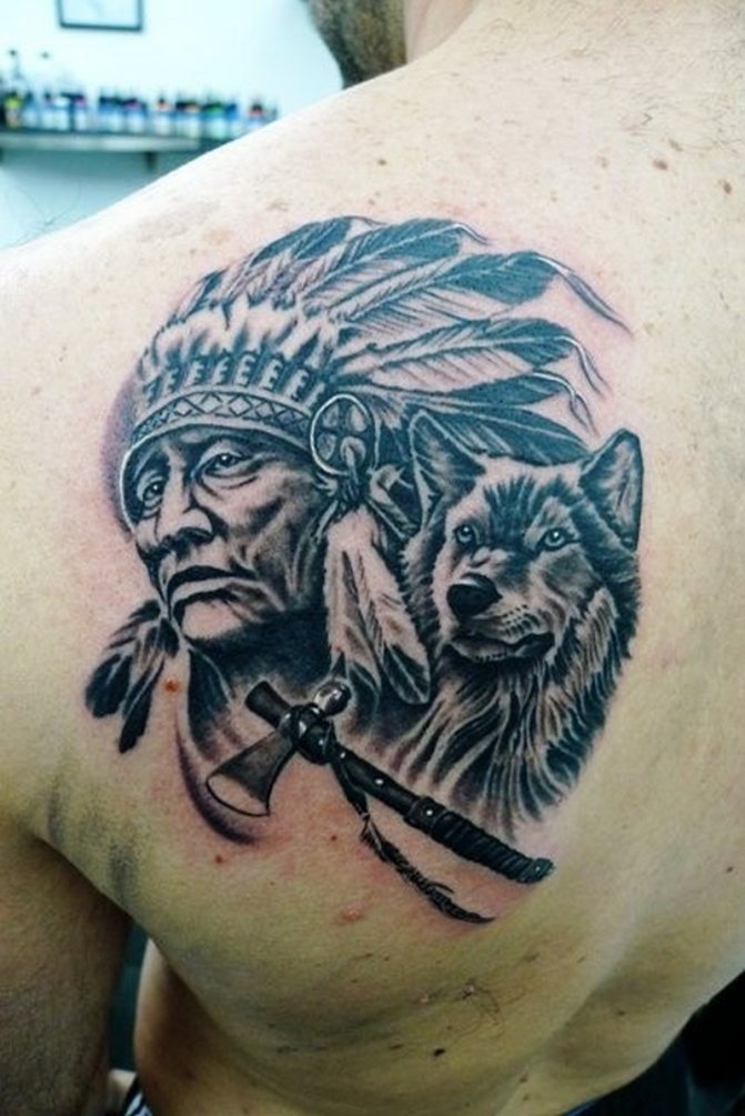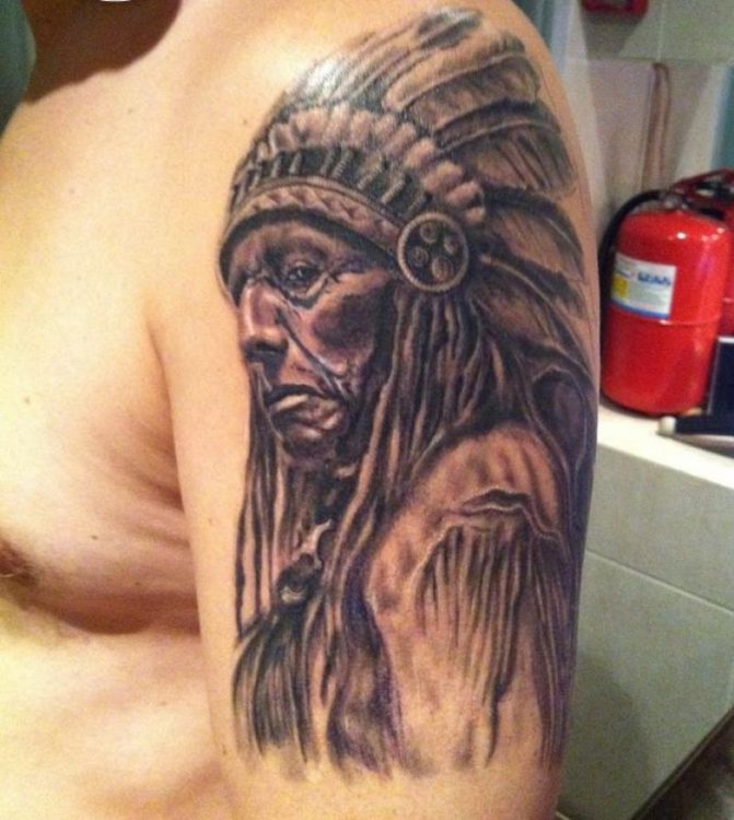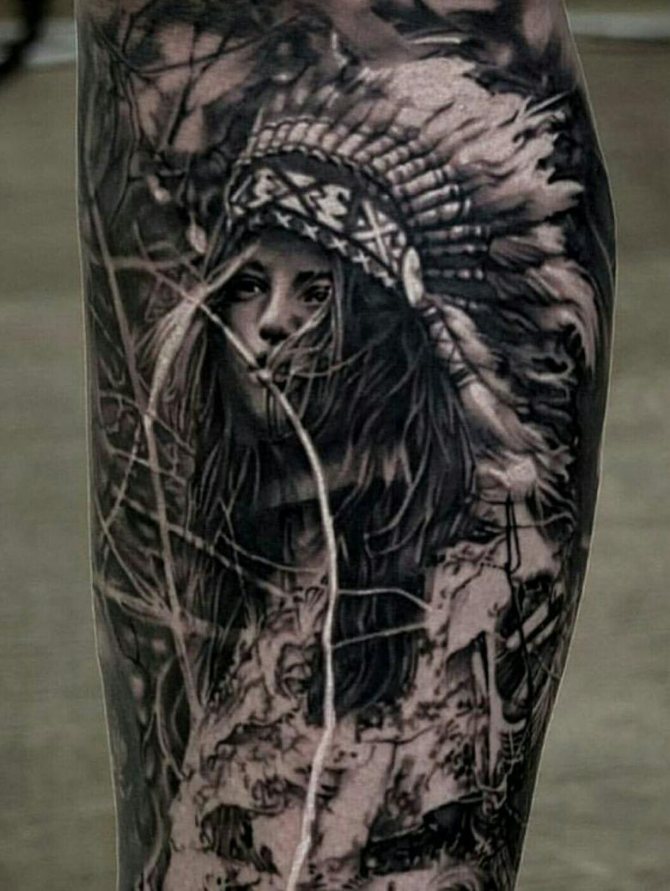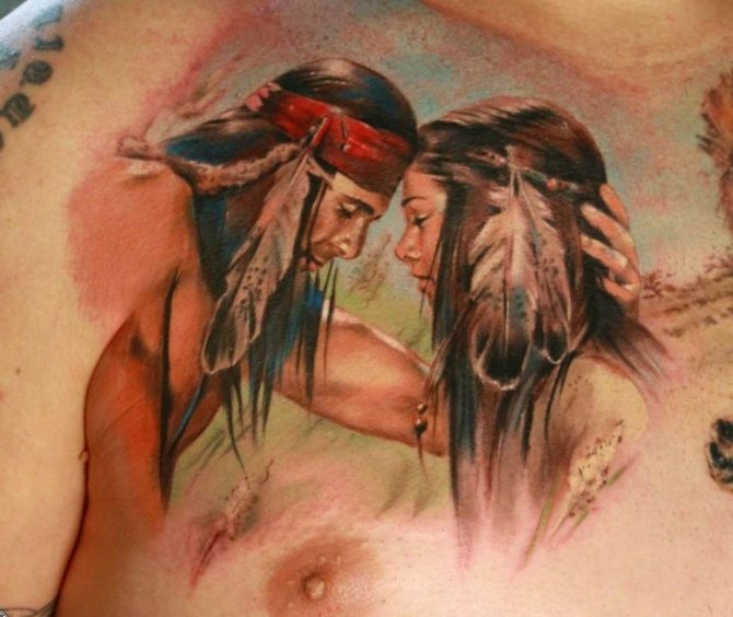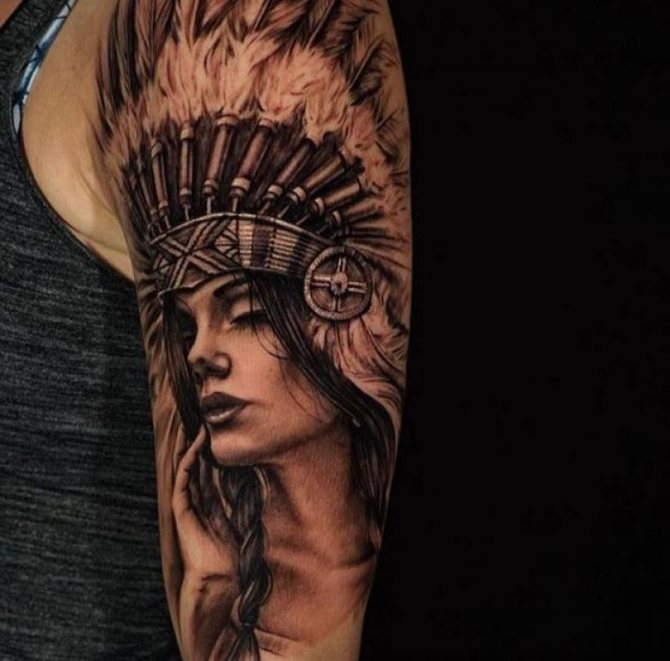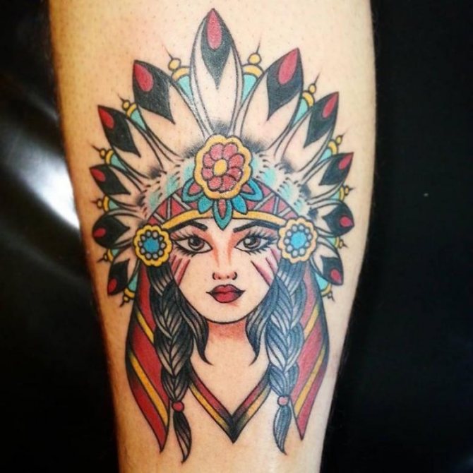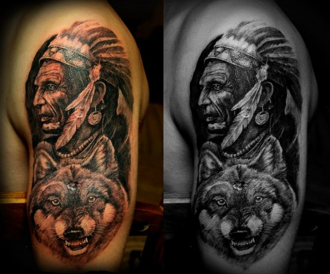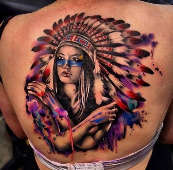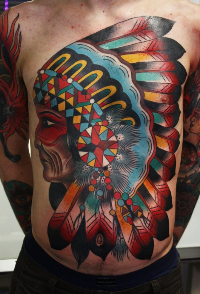 Татуировката с първия жител на Северна Америка символизира почитта към традициите и уважението към предците. Символиката на индийската татуировка е израз на почит към традициите и уважението към предците. Индиецът, като древен жител, представлява сила, способност да се справя самостоятелно с трудностите на живота и да взаимодейства с елементите на Вселената.