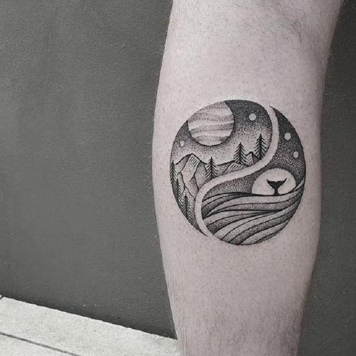 Въпреки че ин и ян традиционно се обозначават с черния и белия цвят, културата на татуировките позволява артистични интерпретации. Достатъчно е да подчертаем очертанията на "петна", които следват едно след друго, искат да се слеят в едно, но са принудени да останат разделени от невидима граница.