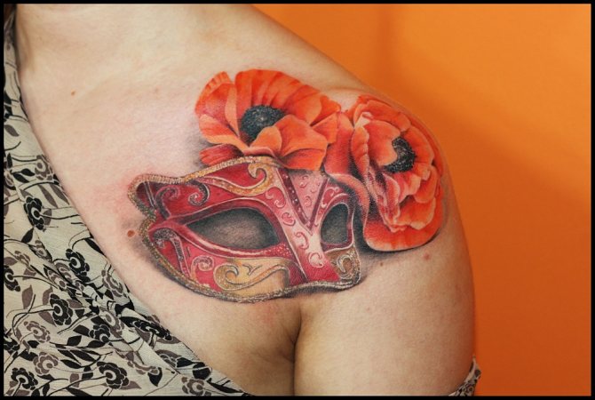 В света на татуировките изображенията на маски са много популярни сред символите за отвръщане от тях. Смята се, че то заблуждава злите духове и поема върху себе си всички негативи.