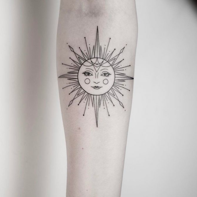 Соларните мотиви винаги ще бъдат анимирани. Изображението на слънцето ще дари любов към живота, душевна топлина, ще помогне за преодоляване на трудностите в живота, ще предпази от завист и предателство.