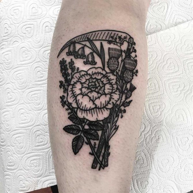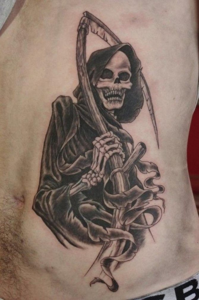 Сред многобройните скици, които могат да бъдат открити в колекциите на салоните за татуировки и примерите за снимки в интернет, най-популярните мотиви включват класическото изображение на смъртта с характерния му атрибут - наклонената черта. Често се срещат и композиции, в които зловещият персонаж е допълнен от пакет карти, часовник, кръст, вериги, различни надписи на цветя или дори лъкове. Изборът на скица до голяма степен зависи и от атмосферата, която искате да предадете с татуировката. Дизайнът може да бъде направен в страховит, ужасяващ формат или обратното, да представлява спокойствие или дори да бъде декориран в хумористичен тон. Много от скиците копират образите на смъртта от филми, литературни произведения или са изпълнени по скиците на клиента.