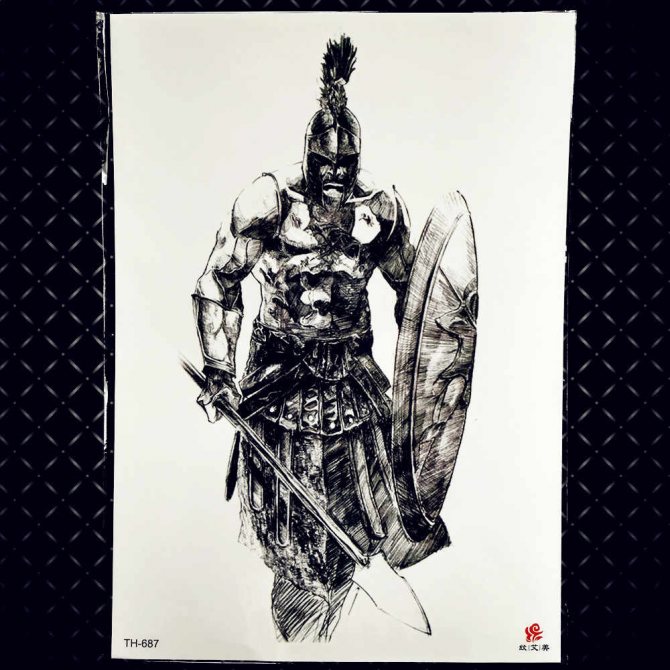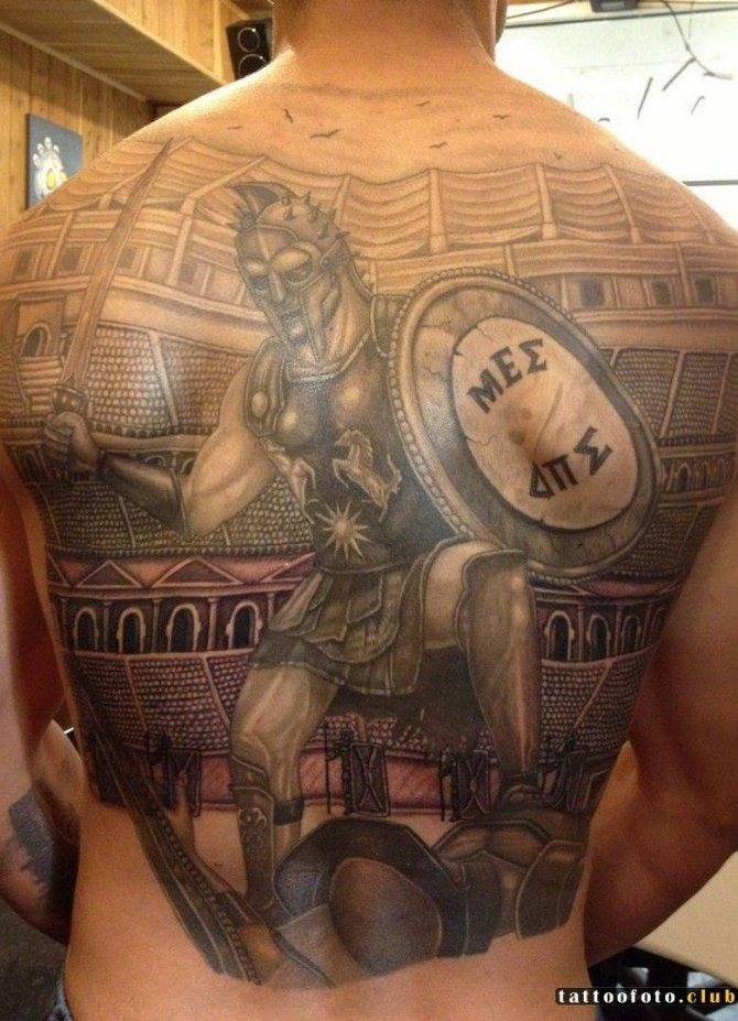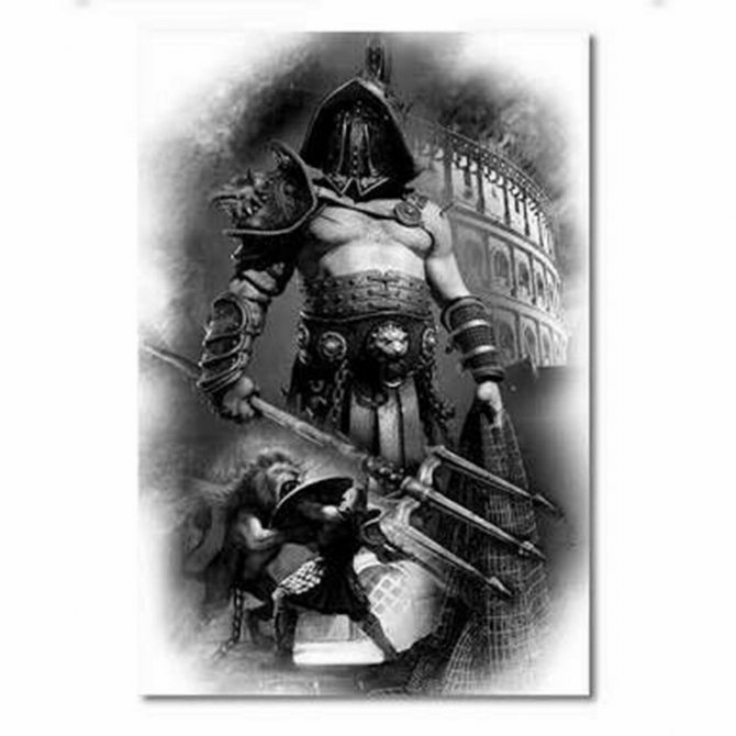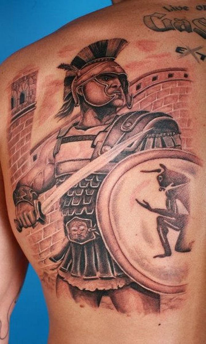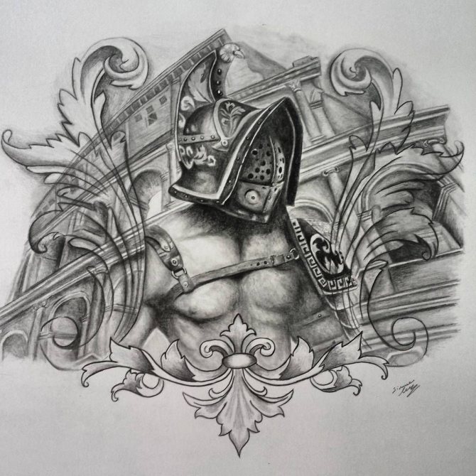 Изображението върху тялото на мъжа показва не само неговата мускулатура, но и безстрашието му, желанието му да бъде свободен и независим. Моделите могат също така да символизират безнадеждност и отчаяние, преданост към собствените убеждения, надежда и лоялност. Ескизите с гладиатор ще бъдат идеалният избор на силни и атлетични личности, които са способни да постигнат целите си по всякакъв начин.