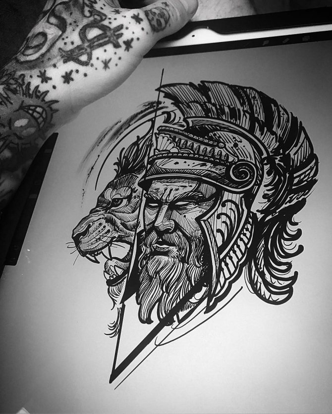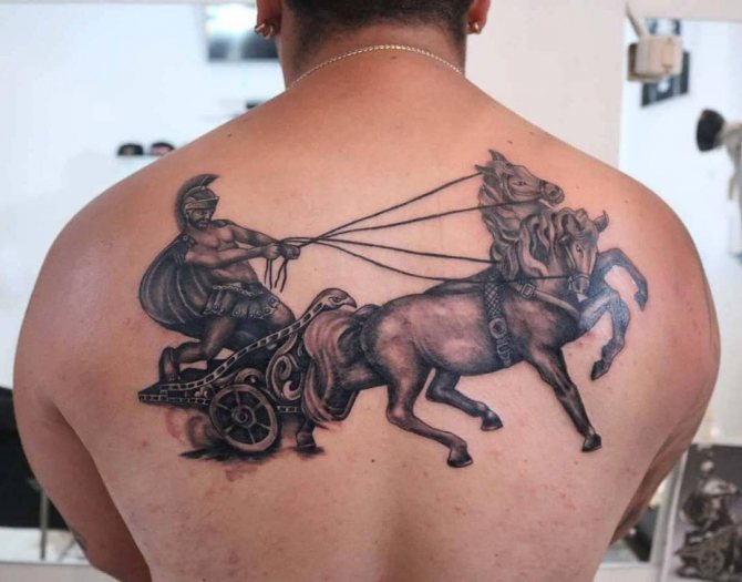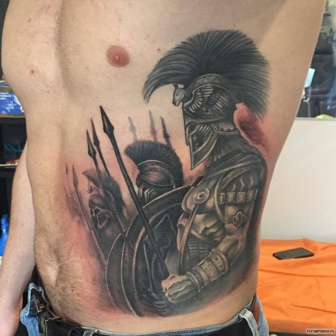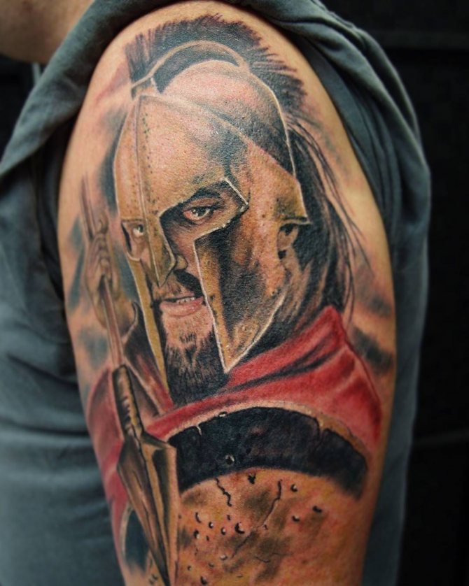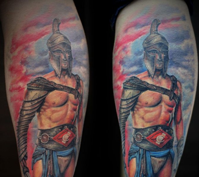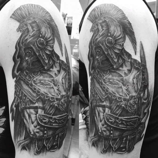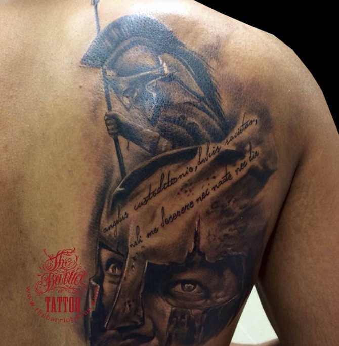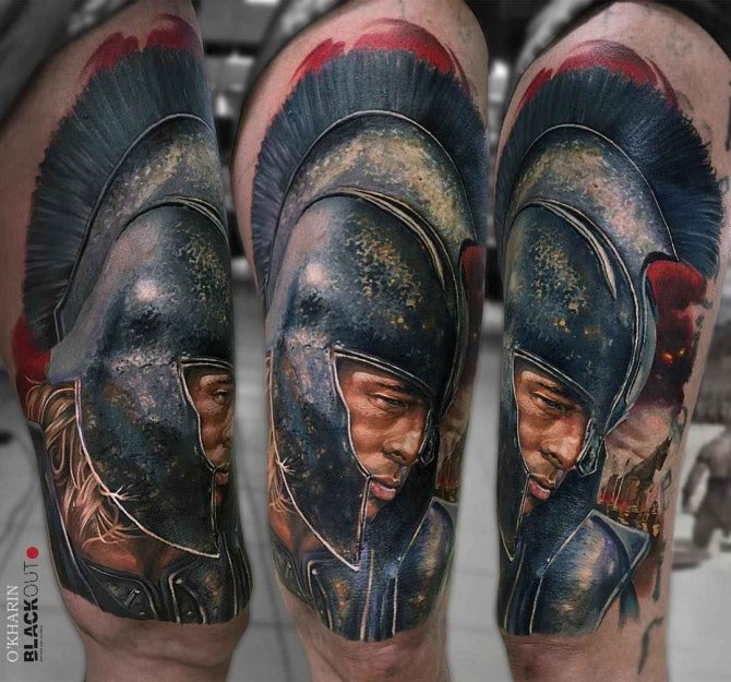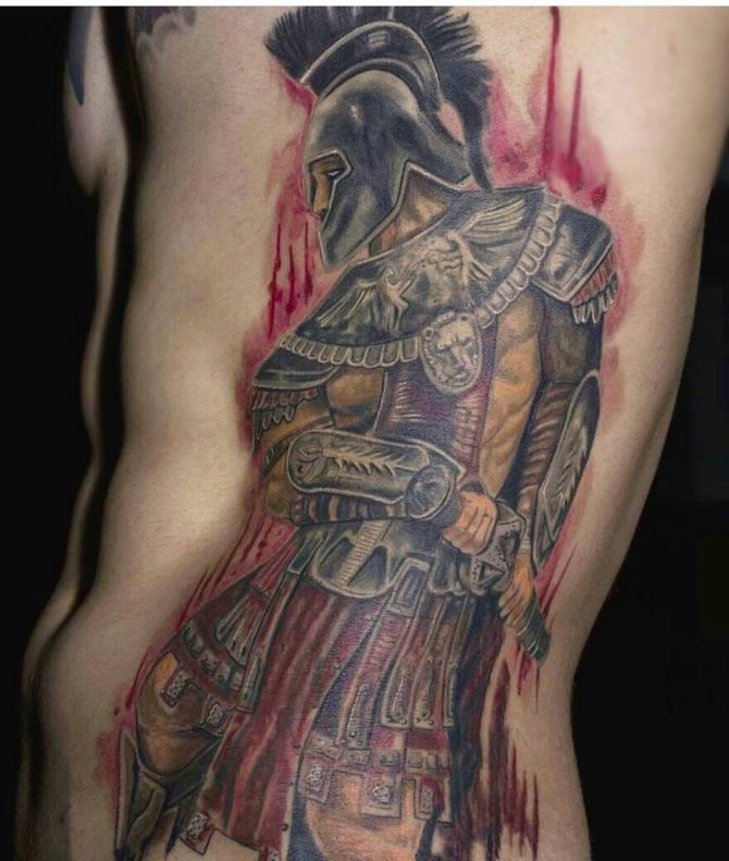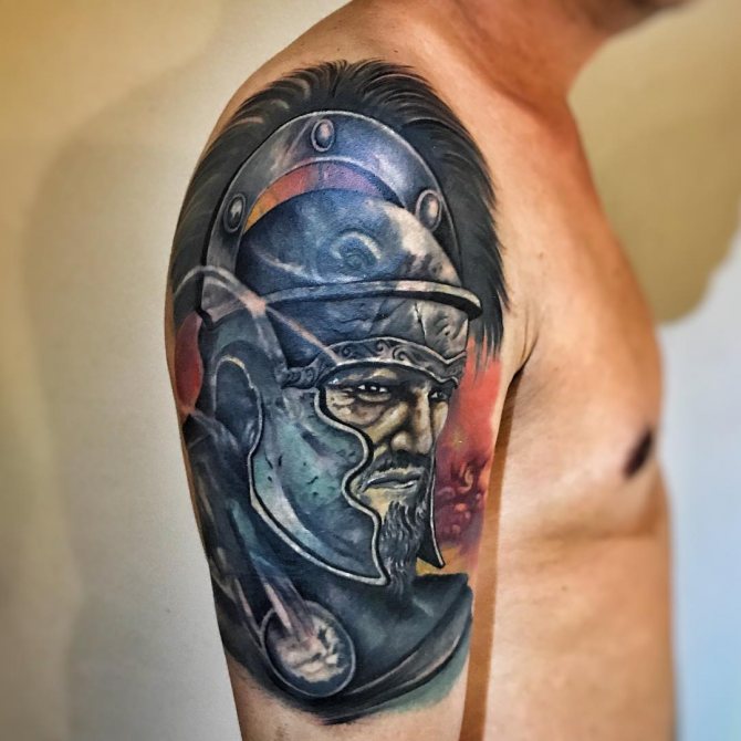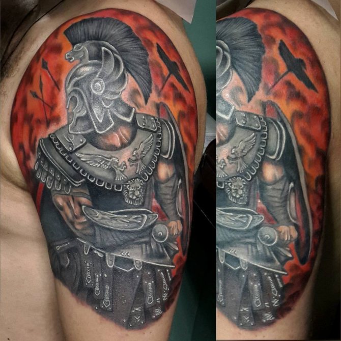 - портрет на носителя на татуировката в доспехите на древноримски воин;