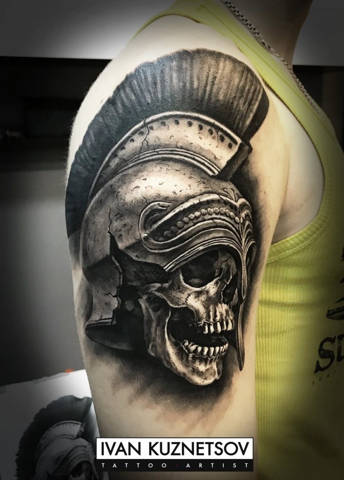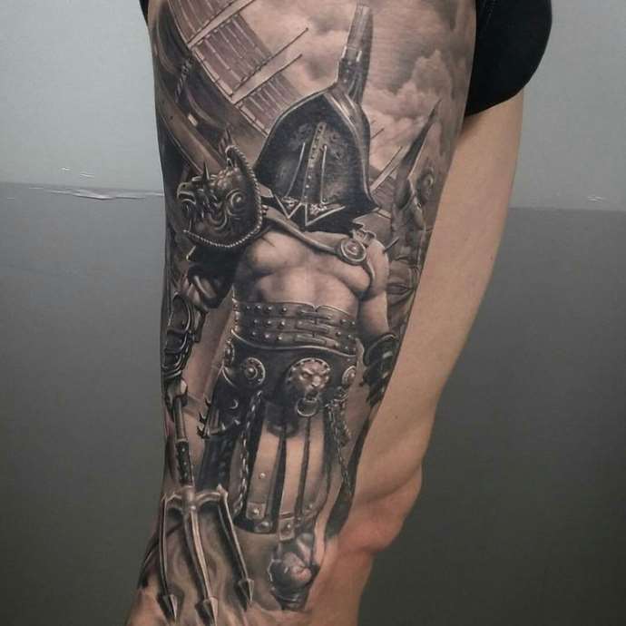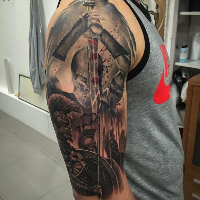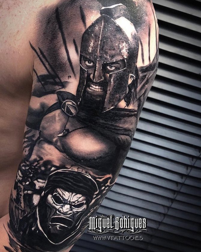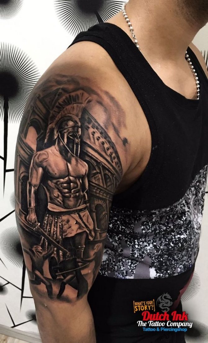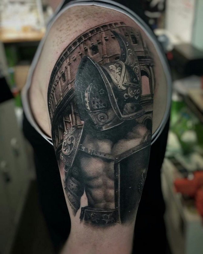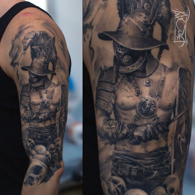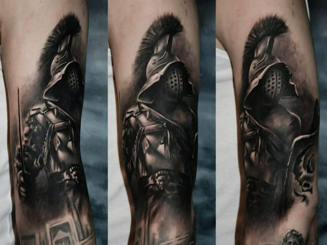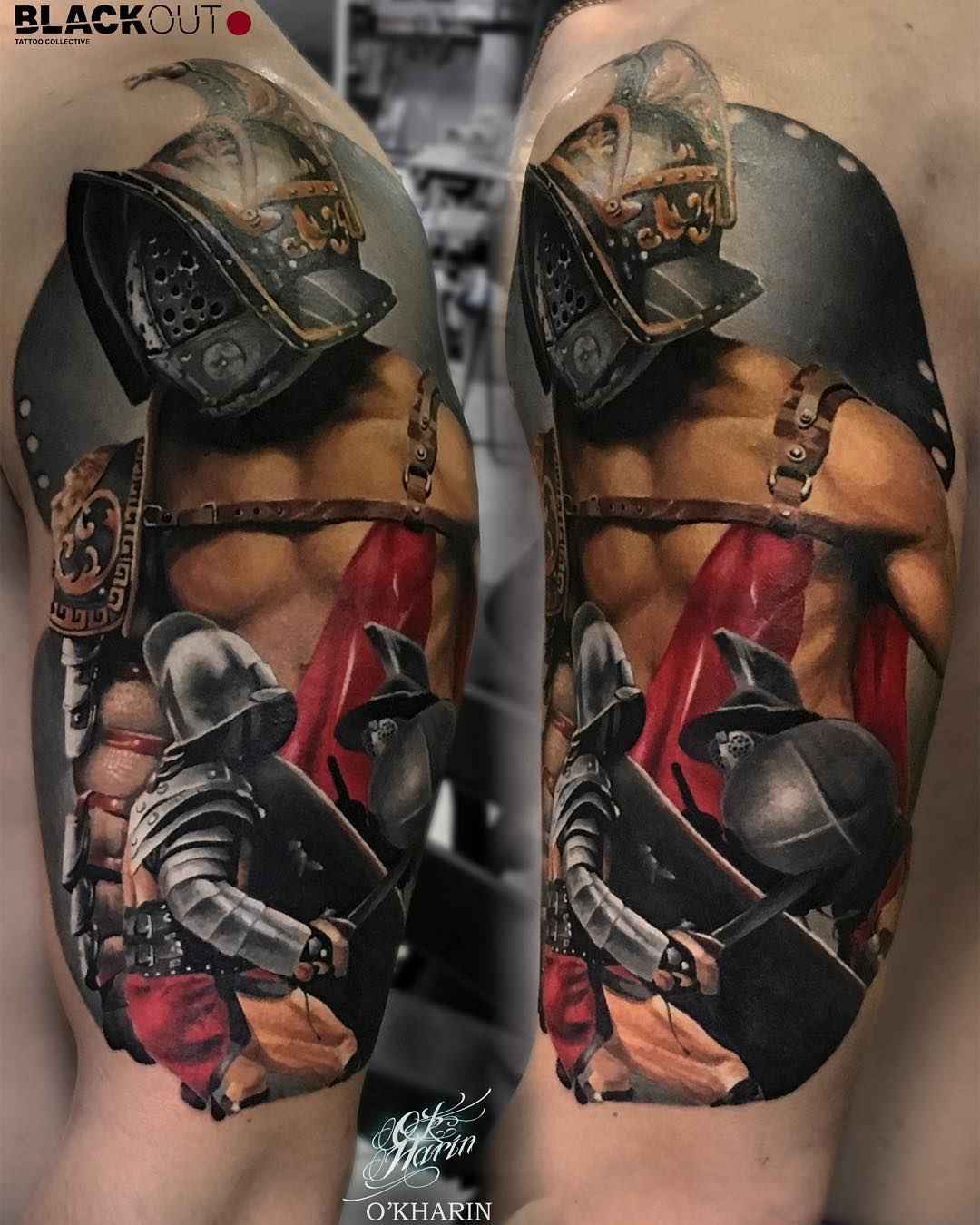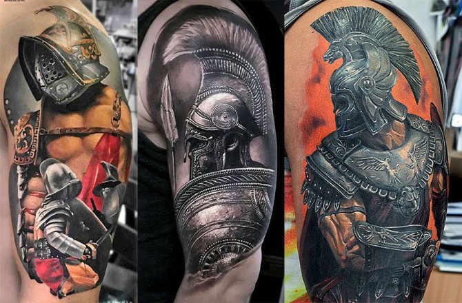Малък фотопреглед на гладиаторски татуировки в различни стилове и посоки - от реалистични с качествени детайли до класически в черно и бяло, но не по-малко зашеметяващи.