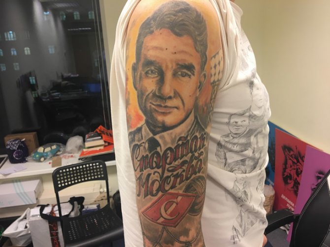 Освен това влияние оказва и начинът, по който той се държи в контраст с клуба. Искам да кажа, че той можеше просто да разруши цялото ръководство. Можеше да ги бомбардира по такъв начин, че през следващата година да забравят за всички други клубове в Русия и да говорят само за тази тема. Той очевидно има какво да каже. Но той не каза нищо. И се държеше като мъж. Не знам как да го обясня по-подробно, но просто са ми близки неговите човешки качества: честност, лоялност към мястото, където работи, това, че никога не се опитва да хвърли вината върху друг човек. Тези качества, както и фактът, че ни направи шампиони за първи път от 16 години насам, по някакъв начин оформиха идеята да си направим негова татуировка.