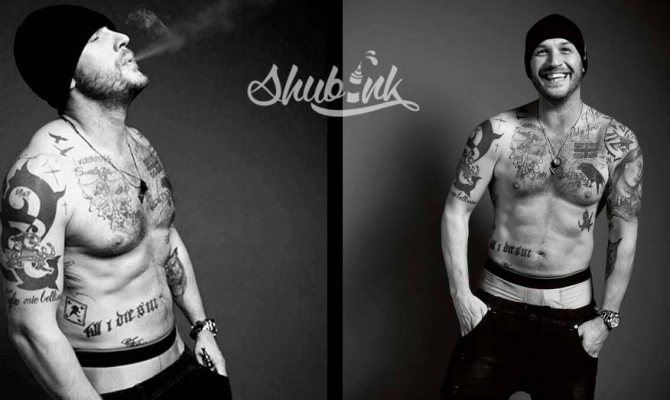 За всяка татуировка на Том Харди има история. Той не слага просто някаква снимка върху кожата си. Актьорът нарича татуировките си история на живота.