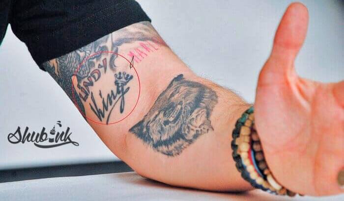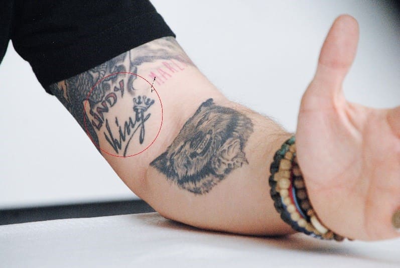 - Текстът на татуировката, името на агента му, с когото Харди е работил в тясно сътрудничество. Името на агента беше Линди Кинг.