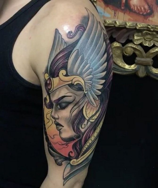 Тези воини обикновено се изобразяват като красиви момичета. Главата им е украсена с шлем. Често те седят на кон и имат собствени крила. Такива татуировки са много привлекателни и женствени.