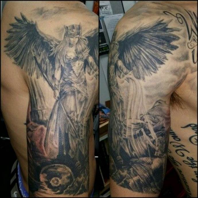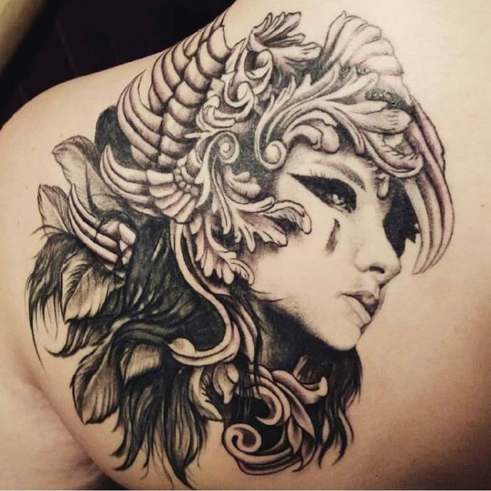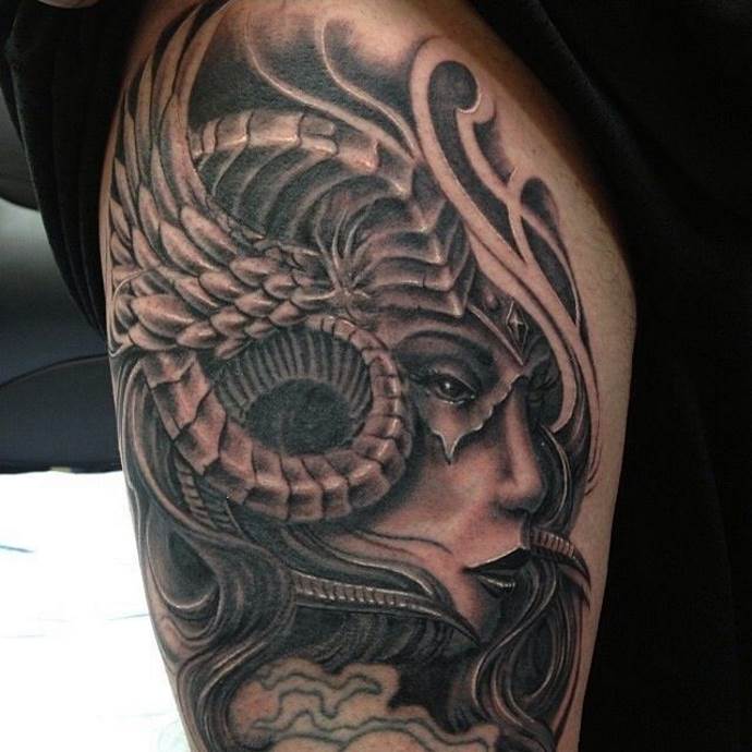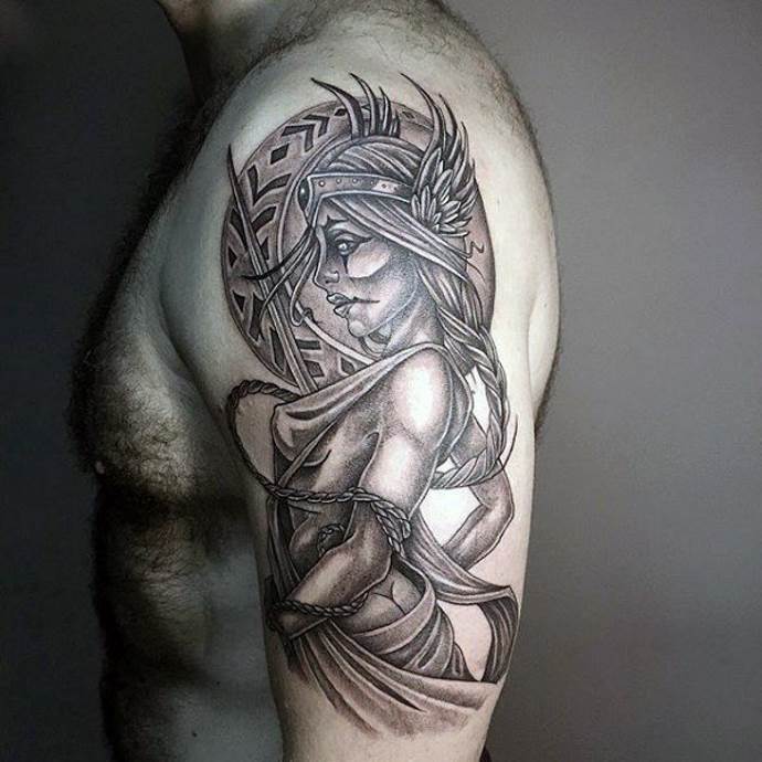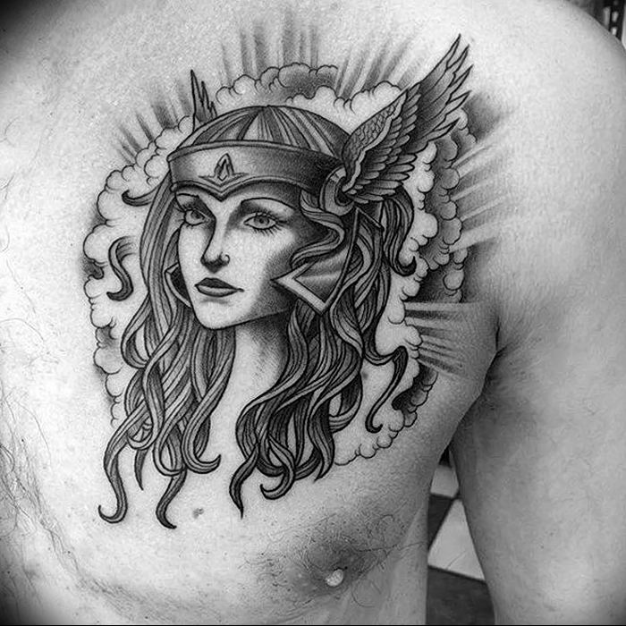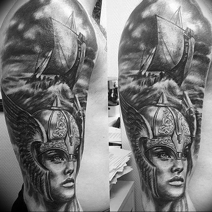 - Този портрет на Валкирия олицетворява твърдостта на решенията и действията на човека. Татуировките с валкириите носят самочувствие.