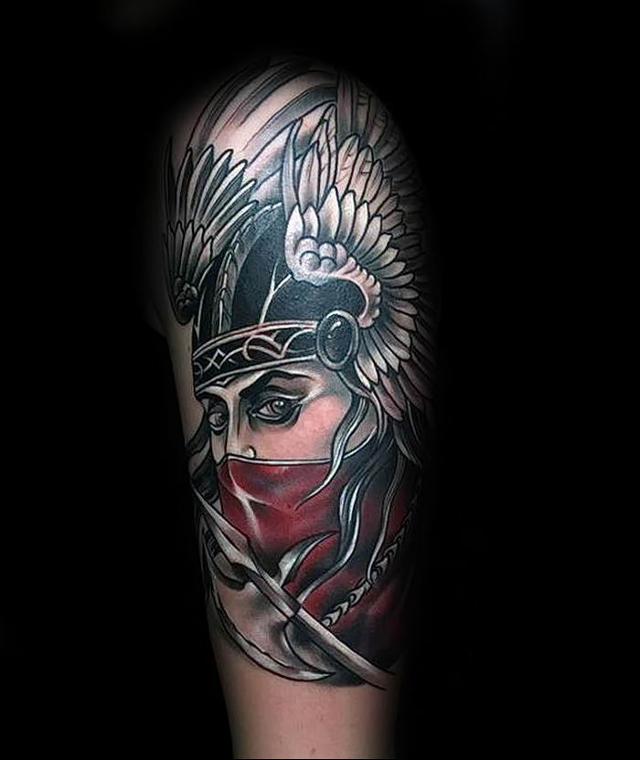 Татуировка Валкирия - Образ на красив и смел воин. Валкириите идват от скандинавската митология, те придружават Один, а също и душите на мъртвите воини във Валхала. Валкирията е символ на смелост и храброст и мощен амулет за онези, които се борят за своята земя.