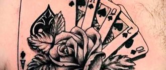Текстът на татуировката не е буквален и може да се чете по различен начин в зависимост от различните обстоятелства и дори от частта от тялото, върху която е нанесен.Сложността на този език води до факта, че хората с голям опит в нанасянето и разчитането на такива изображения, придобиват "през оградата" голям авторитет, наричат ги "носители на пръстени", иглата - "пеш", "шпора" или "жило", мастилото се нарича "мазут" или "мръсотия". В края на краищата, "мазут" са най-ценните продукти в зоната: чай, мазнина и сладко; по този начин мастилото за татуировки се приравнява с най-високите материални ценности на зоната, докато самата татуировка се нарича "регалка", "квитанция" или "портокал". Татуировките и тялото са интегрирано цяло в постоянен диалог с външния свят. Татуировките в затвора изискват от носещия ги да спазва вербални, жестови и поведенчески правила! "Автограф" Татуировките обикновено са с името на собственика или със символ, който го замества, и са толкова разпространени, че могат да се видят и извън света на крадеца, често върху китките на други хора. Личните амулети включват персонални изображения на ангели пазители, Исус Христос, Дева Мария, светци, църкви и черепи. Както можете да видите, всички те са свързани с религиозната тема за смъртта и носят скрито свещено значение. В света на крадците смъртта в обикновения смисъл на думата не съществува и за да се "роди" крадец, човек трябва да "умре" два пъти: да напусне "света на непълнолетните" и да напусне "света на волята". "Дяволи, които се занимават с търговия". Светът на крадците не признава друг авторитет освен този на крадците, така че всяко изображение на "неконвенционалното" се смята за проява на външния свят, враждебен към крадците; те отхвърлят "системата" в полза на света на крадците. Например образът и думата "дявол" в жаргона означават човек, който не принадлежи на крадците, и се отнасят по-скоро до "ченгетата" или "дяволската рота" - служителите на ИАБ и МВР, а "черти кумовски" означава затворници, които донасят за съкилийници на кум (сътрудничат на лагерните началници). "Костюмът на клубовете Понятието "костюм" в жаргона на крадците е недвусмислено и изключително важно, тъй като с него се обозначават едновременно всички "малина" и всички крадци от същата специалност, крадците на съдбата, късмета или щастието. "Да държиш костюм" на жаргон означава "да имаш власт, да ръководиш, да поддържаш реда и да поддържаш "понятията". Основните символи на крадеца в закона са знакът на цвета на картите "тройки" или "пики" - най-силните "козове" в тестето на крадеца; това включва също изображения на череп, крила, кръстния знак, короната на краля на крадците, змии и орли; друг символ на крадеца е котката, символизираща ловкост и късмет, която означава - Роден обитател на затвора. "Майката на крадеца" в затвора е не само определена длъжност, но и родоначалник на крадците, носител на законите на крадците, т.е. "ритуален персонаж" - на жаргон: "маханка", "паханка", точно както "семейството на крадеца" на жаргон е група крадци, което не означава роднинска връзка. Ненапразно една от клетвите на крадците е: "Кълна се в майка си!". "Черен костюм." Терминът "изнудване" се прилага към обетите на крадеца. Татуировките на "повалените" предизвикват само ужас в зоната и всички ги отбягват като чума, дори случайният контакт с такъв човек е "п
