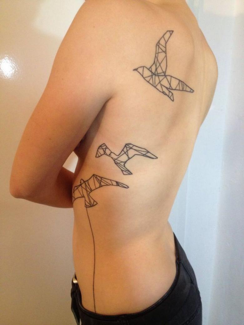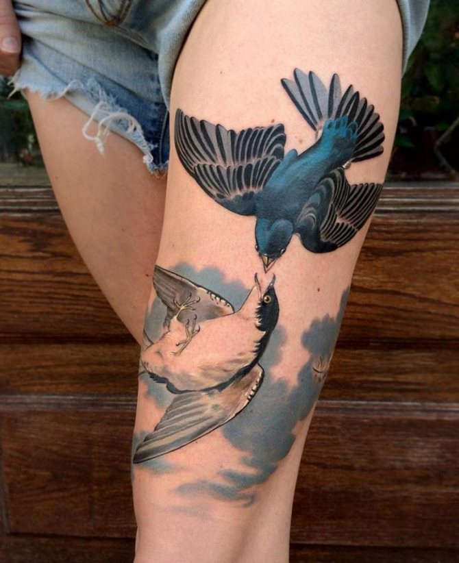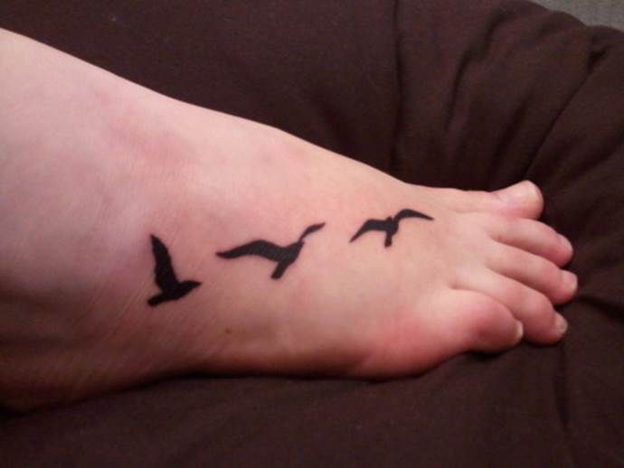 Често татуировките са прости и конвенционални, за да няма съмнение кое животно е татуирано. Най-основната - ято птици над река или море, на небесния свод, заобиколени от ярко слънце.Яхтсмените често имат татуировка - чайка, а на заден план - морето и кораба; тя може да бъде прекъсната и с думи или букви на всеки език. Често това е житейско верую или красиво звучаща фраза. Картинката се татуира на открито място, така че да се вижда в лятно или отворено облекло.