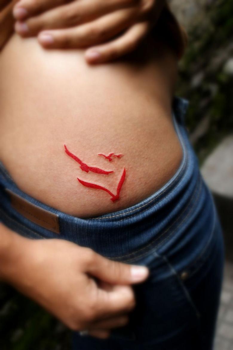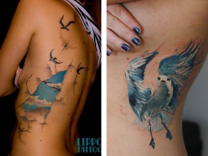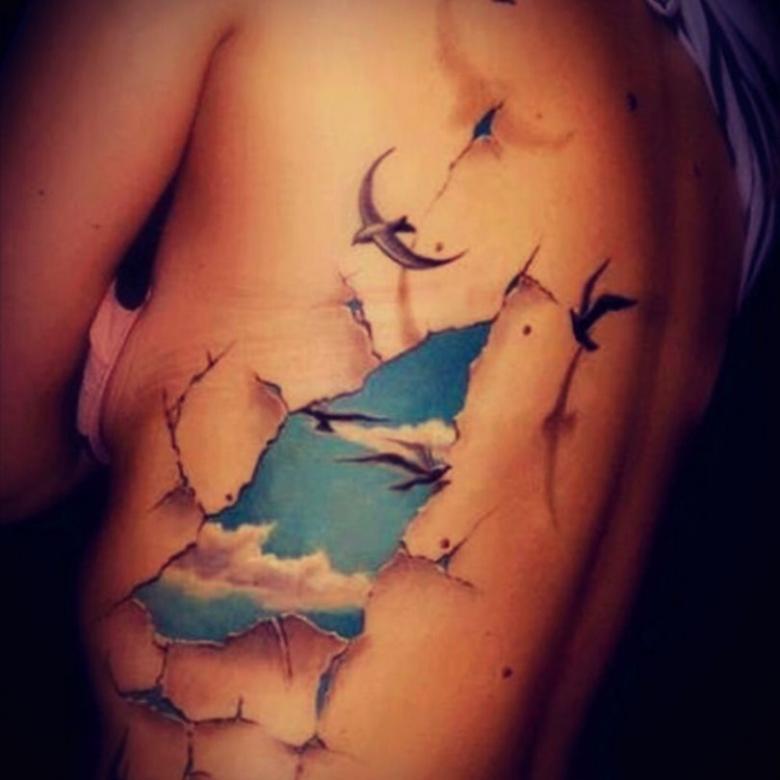 Искате ли да смаете околните с необичайна татуировка? Можете да направите небето да се провре през кожата ви и оттам да излетят свободни птици. Знак за свободата на ума от филистерски условности. Искате ли да промените дизайн, който отдавна сте си татуирали? Това е напълно възможно; можете да наложите остаряло изображение с цветно, модерно. Помислете и за вариант на уникална подложка - такава, каквато никой друг от познатите ви няма да има. Ето няколко варианта: