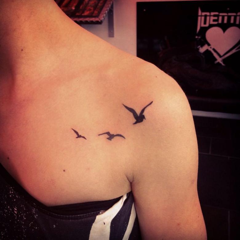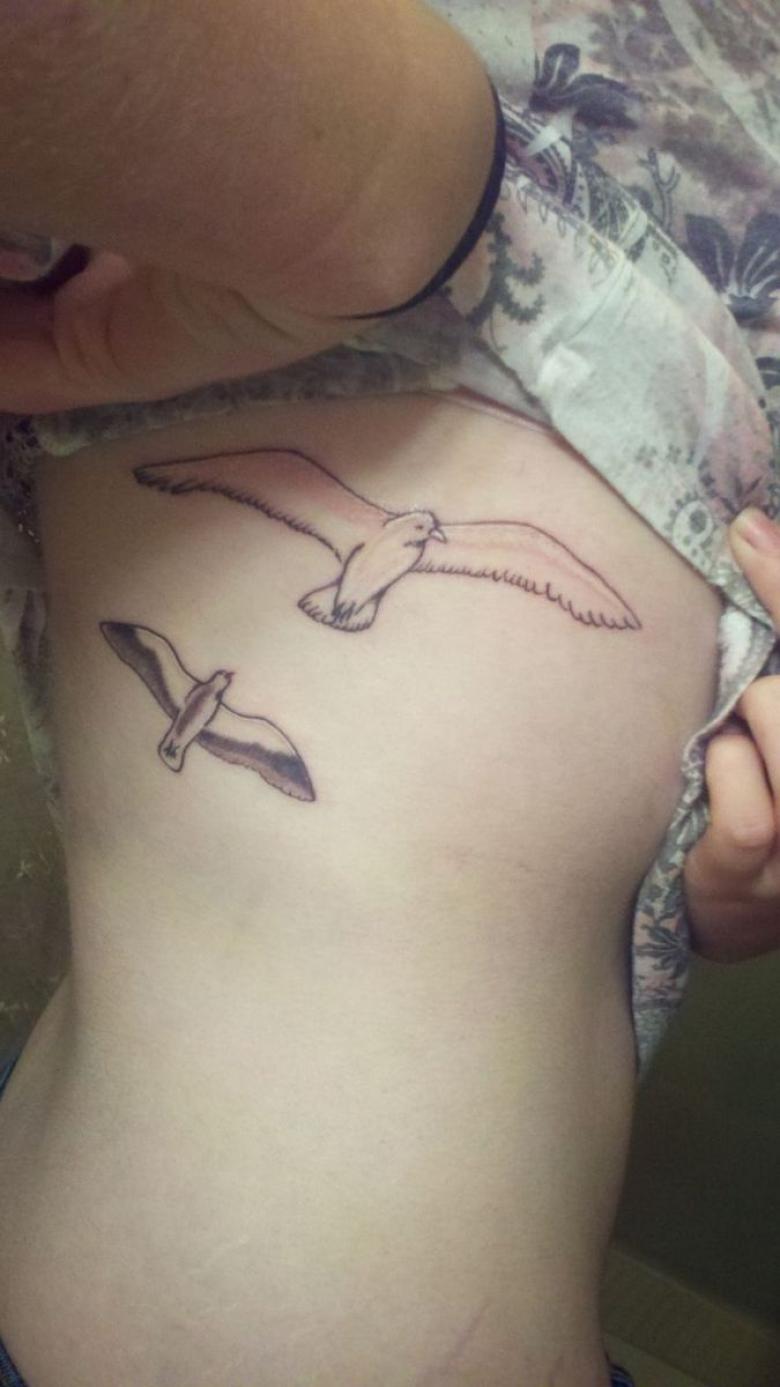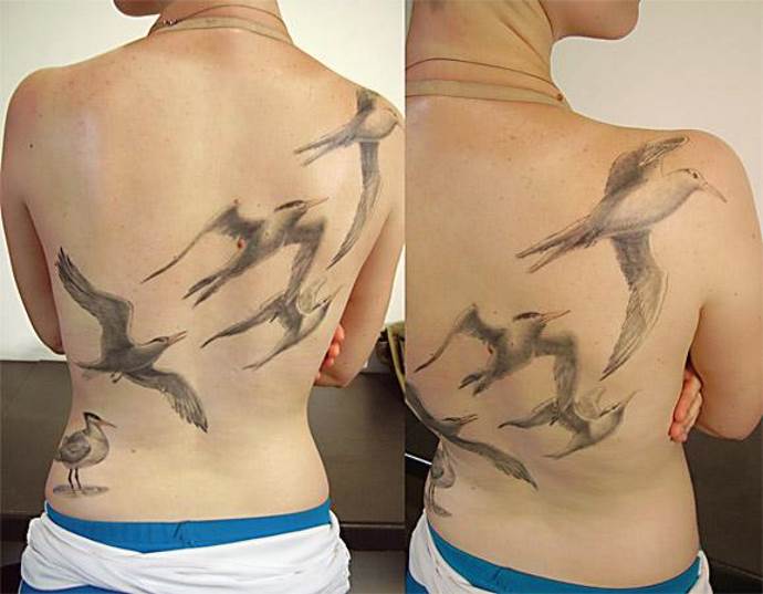 Повечето татуировки се правят на гърба, в долната част на гърба, в областта на лопатките. Оригиналните дами често получават чайка, море, слънце и морска тема, отпечатана на гърдите или под гърдите. Можете също така да направите версия на голяма птица, която заема целия гръб, а крилата ѝ се опират плътно на раменете.