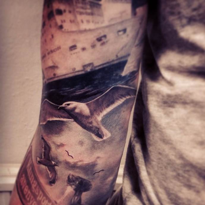 Реалистична татуировка с чайка