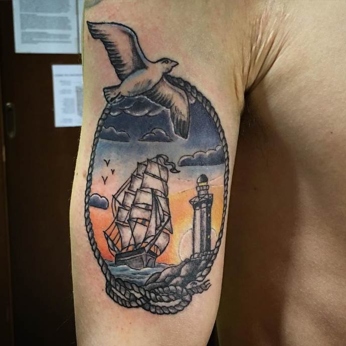 Любимите ви герои морски господари на съдбата ли са? Трябва да изберете татуировка от старата школа: тези дизайни са пирати и моряци. Можете да изобразите море, кораб, лодка, небе - нещо на морска тематика.