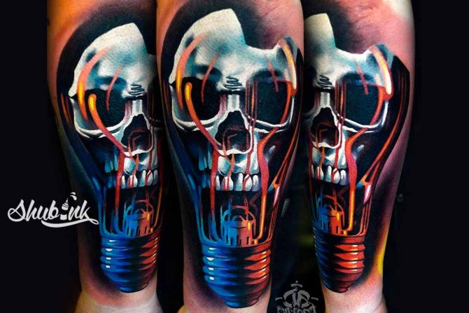 Друга популярна комбинация от символи в татуировките е часовникът и черепът. Те могат да изразят отношението ви към живота и смъртта, както и да покажат стойността на всяка минута. Татуировка на часовник с череп може да означава смъртността на човека., за да кажем, че животът не е вечен за никого от нас.