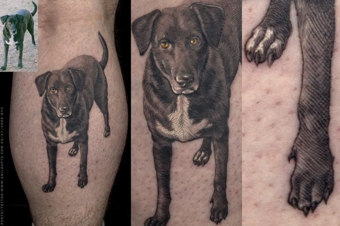 Мястото на татуировката на кучето зависи от вас. Няма забрани.