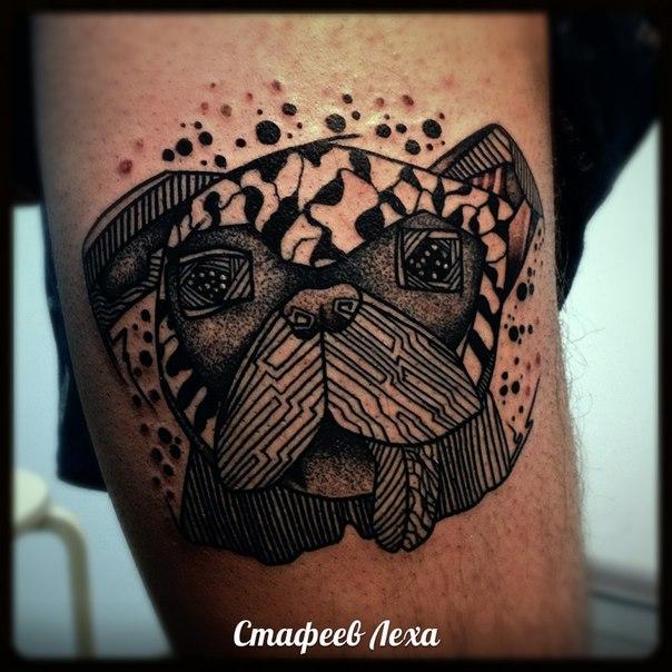 - Геометрия или линия. Муцуната на кучето може да бъде създадена с графични линии. Подходяща татуировка за момчета.